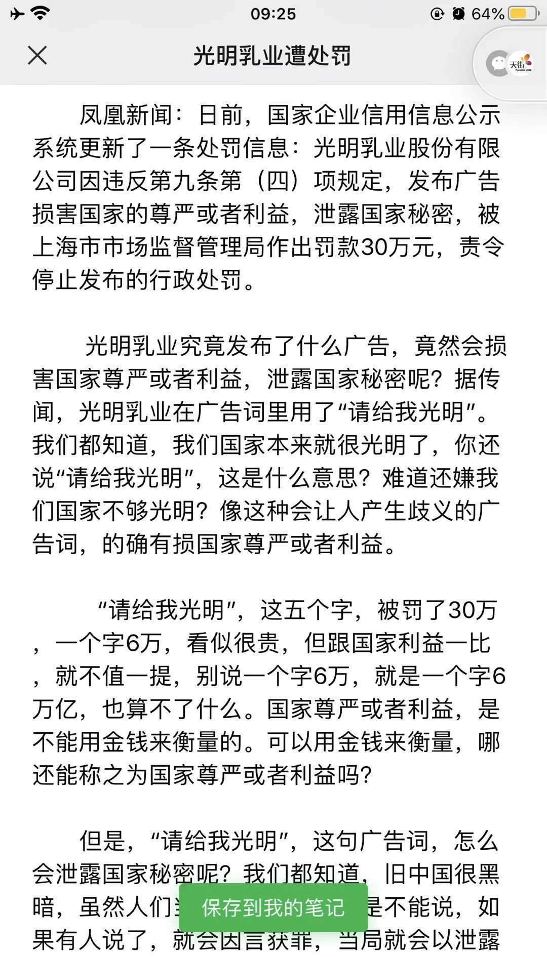 昨天早上,在網上衝浪的時候看到這樣一條沒頭沒尾的新聞:光明乳業發佈廣告損害國家尊嚴利益,被罰30萬。