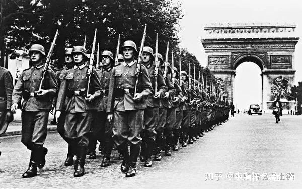 (德軍通過雄獅凱旋門。法國是二戰史上除意大利以外被黑得最多的國家,比如提問“當法國遭受侵略時該怎麼辦?”,回答是“你可以在一開始就投降,然後別人會替你贏得戰爭”。的確,二戰開始前的法德兩國在軍備科技上並沒有顯著代差,畢竟虎式坦克等黑科技都是在德國佔領西歐以後的蘇德戰爭中後期才點亮的。法國人很明顯只是輸在了機動戰術的理論研究上,且過於依賴馬奇諾防線以及陣地戰思維,可能還有風騷無腦的原地投降助力,才使得這場載入史冊的戰役被世人所驚歎、也成為乳法大軍們手中的笑柄利器。另一方面,作為一戰戰敗國且被“閹割”後的德國能夠在短短20年內就反殺英法,也更加説明了列強國家們之間是不能隨便割韭菜的。圖片來自網絡)