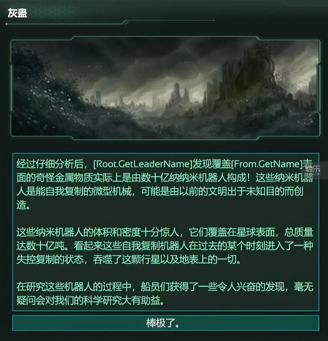 體驗過科幻題材策略遊戲《羣星》(Stellaris)的玩家或許會記得遊戲中名為“灰蠱”的特殊事件,這一事件所描述的便是納米機器人同化星球的災難場景。