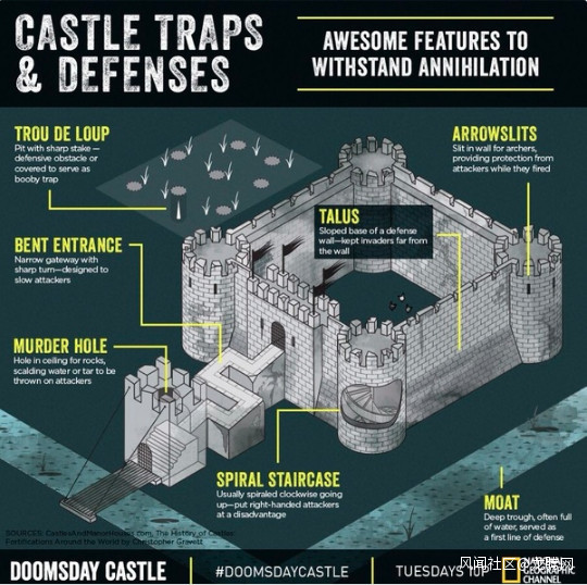 守衞者站在上面的樓層,然後在某個可憐的入侵者從敞開的大門衝進來時,就把各種髒東西砸在他頭上。他們可能會扔石頭、炮彈、垃圾、糞便、易燃物質,或者其他任何會傷害、感染,或者最好能幹掉那個可憐士兵的東西。 0