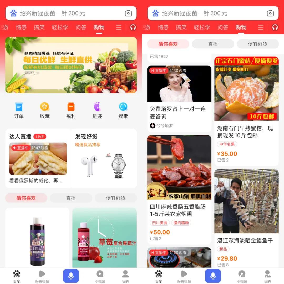 這樣一來,百度通過搜索引擎在電商方面的轉化效果便十分有限,依賴搜索引擎推行度小店等電商業務也不會取得重大突破。也許是為了避免這樣的局面出現,百度將購物頻道的重心放在了零食、水果、土特產等快銷品上。快銷品的單價低、且剛需性強,潛在復購率高,是試錯率相對較低的產品品類,即便失敗了也不足為惜。