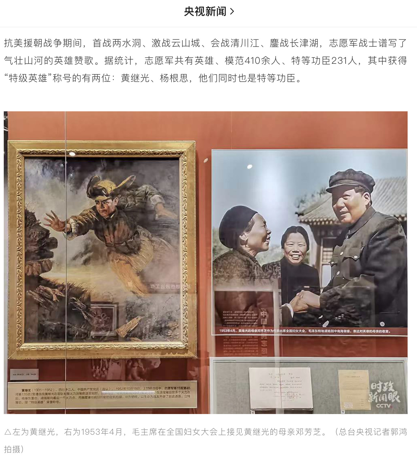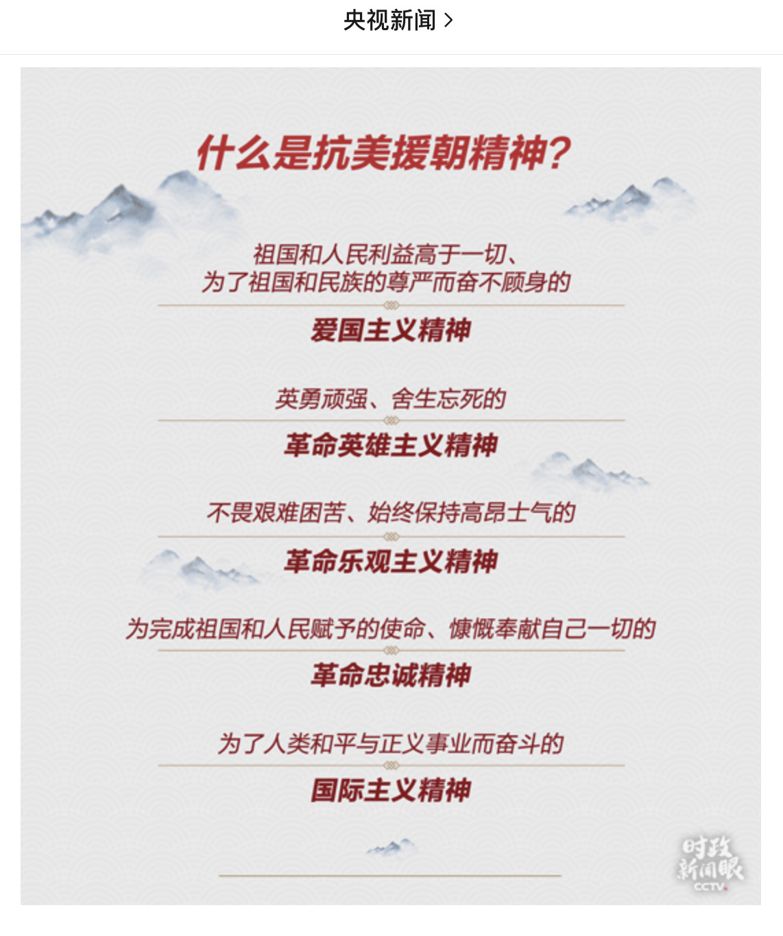 截圖自微信公眾號“央視新聞”文章《習近平:偉大抗美援朝精神是彌足珍貴的精神財富》。