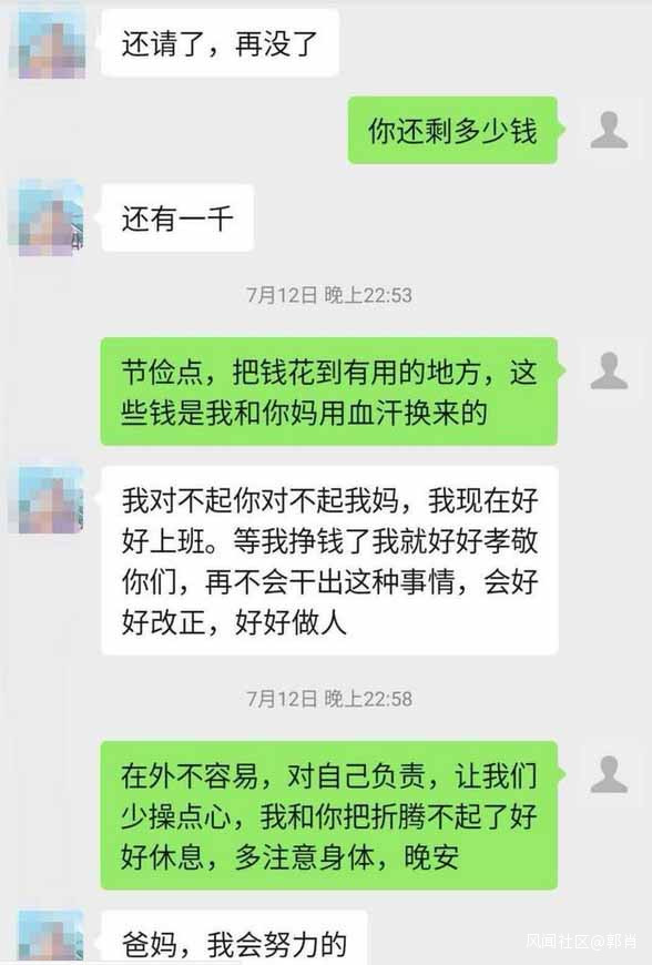 8月28日,薛欣欣分別轉給父母1000元,説自己發了3500元(的實習工資),剩下的夠花了。