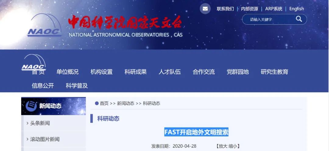 回答是:真的。FAST的主管單位是中國科學院國家天文台,2020年4月28日,他們的網站報道了“FAST開啓地外文明搜索”的消息(http://www.nao.cas.cn/xwzx/kydt/202004/t20200428_5565266.html)。
