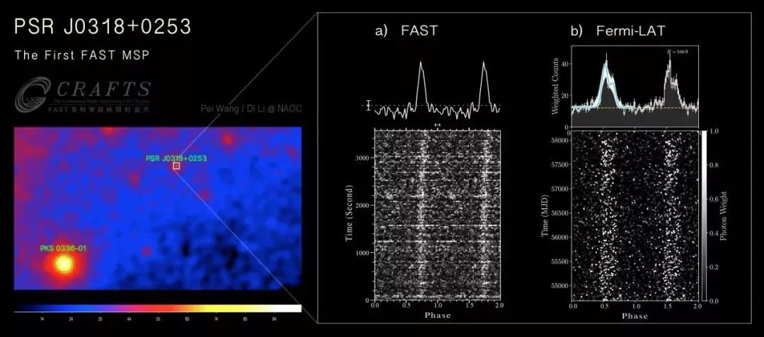 FAST發現的第一顆脈衝星藝術想象圖(上圖)和第一顆毫秒脈衝星(下圖,其脈衝週期約為5.19毫秒),圖片來源:王培
