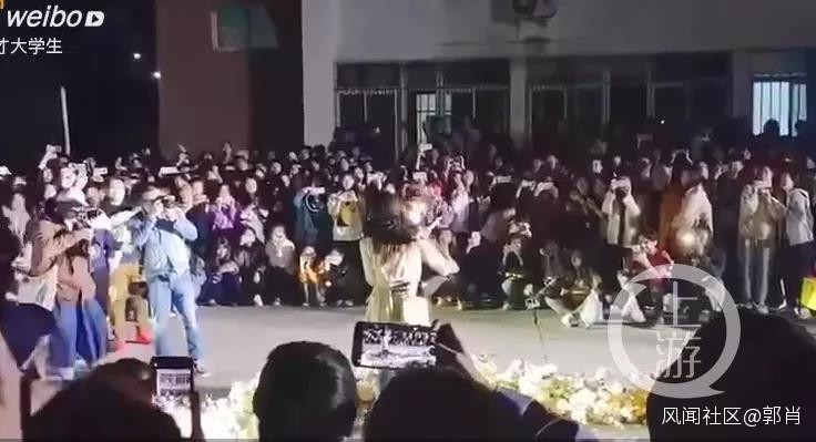 發帖學生稱,10月20日晚6點半左右,有車隊和大量外來人員進入學校,向一名在校女學生求婚,現場視頻在網絡上被大量傳發。
