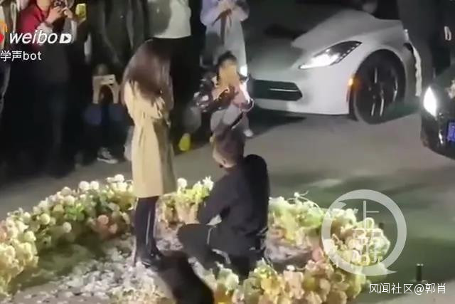 網傳求婚視頻中顯示,多輛跑車停在校內並懸掛粉色氣球,地面鋪滿鮮花,一名黑衣男子手捧鮮花,單膝跪地,向一名女生獻花。與此同時,煙花升空,多名攝影師執攝影機在跟拍。浪漫場面引發大量學生聚集圍觀,不斷髮出尖叫歡呼聲。