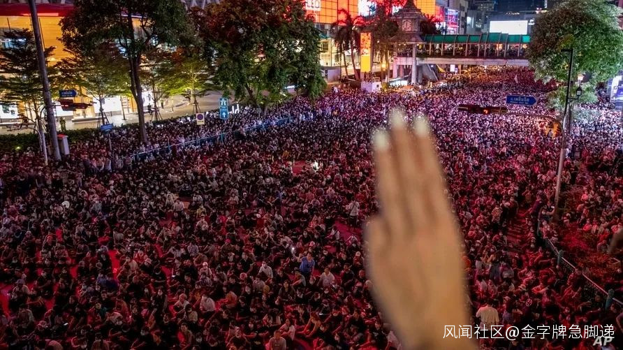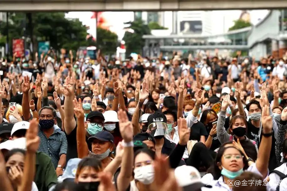 自10月13日以來,曼谷連續出現反政府示威集會,成千上萬的民眾湧向街頭,有人致敬電影《飢餓遊戲》,豎起三指手勢表達對當權者的蔑視,還有人高舉被捕活動人士的照片,呼籲“釋放我們的朋友”。
