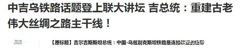 2020年9月23日,吉爾吉斯斯坦總統熱恩別科夫在第75屆聯合國大會一般性辯論發表視頻講話時表示,中國-吉爾吉斯斯坦-烏茲別克斯坦鐵路是連接歐亞的紐帶。10月5日吉爾吉斯就發生大規模街頭示威,這時間掐的!