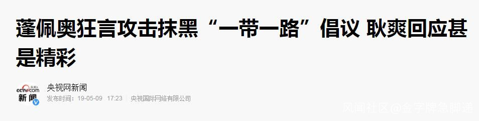 蓬佩奧成了批判“一帶一路”的“專業户”。他不僅代表美政府在各種外交場合散佈“債務陷阱”論調,還鼓動“一帶一路”沿線國家對中國説“不”。他警告非洲國家警惕中國貸款,要求拉美國家抵制中國的“債務外交”,施壓意大利等盟友國家不要與中國簽署“一帶一路”合作諒解備忘錄。