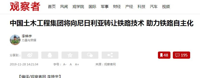 尼日利亞第一條現代化鐵路——阿卡鐵路 也由中國土木承建