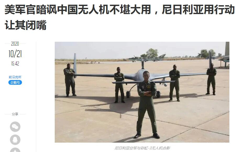 美軍軍官斯蒂芬·湯森曾在2017年的時候暗諷尼日利亞採購中國的無人機不堪大用,表示由於“質量低劣”。
