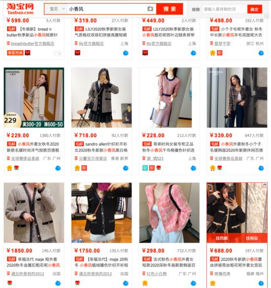 而且在好看上,不管是拉夏貝爾也好,或者是任意國內的女裝品牌也好,都無法提供一個標準。各大品牌“借鑑”的都是歐美的大牌,光是香奈兒的“小香風”就養活了成千上萬的女裝品牌,不管是所謂有品牌的旗艦店,還是個人的小店鋪。