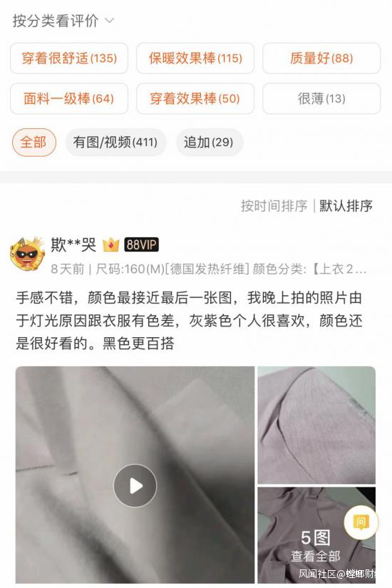 在淘寶一款月度銷量超過2萬+的女性保暖內衣的評論區,評論的側重點全部都是穿着效果和質量。