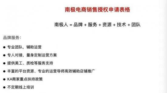 從下圖這份網上流傳的“南極電商銷售授權申請表格”可以看出,南極人的模式是通過提供運營方案和平台資源,獲得授權的工廠自行生產後,貼上自家品牌的標籤,然後售賣。這個模式只提供人力運營和服務,沒有任何重資產投入。