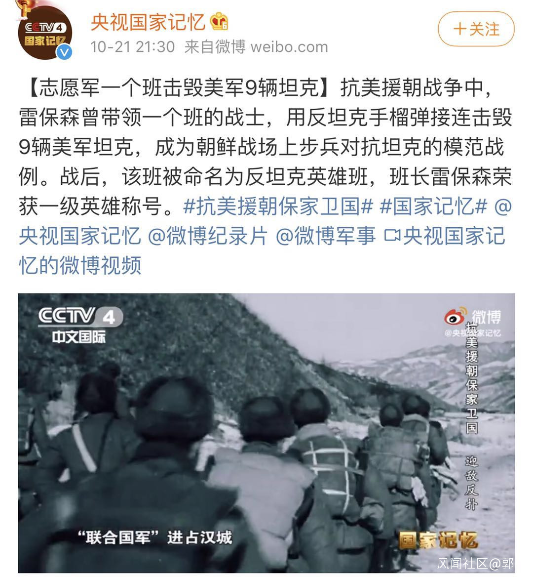 注意,這不是神劇,而是真真實實發生在抗美援朝戰場上七峯山戰鬥中的一幕。今天,@央視國家記憶 重播的這段紀錄片令網友感動。
