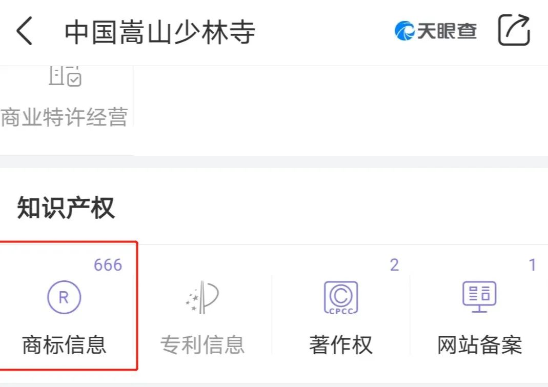 除此之外媒體還挖出,近23年以來嵩山少林寺所註冊商標多達666個。