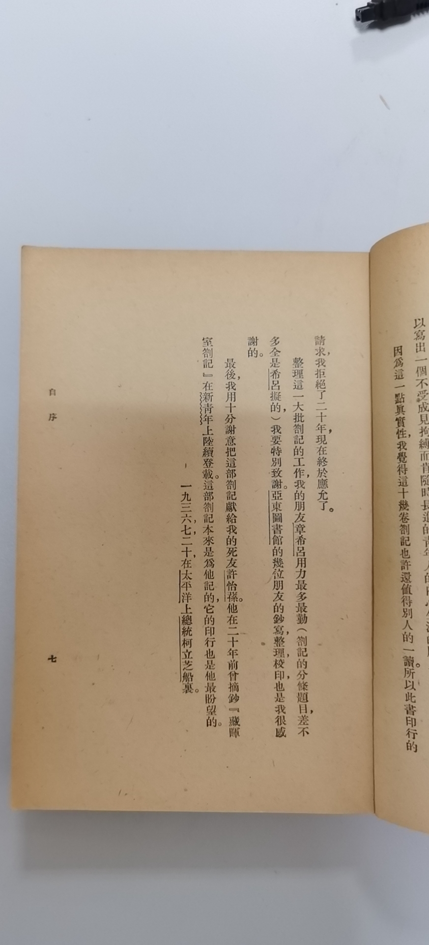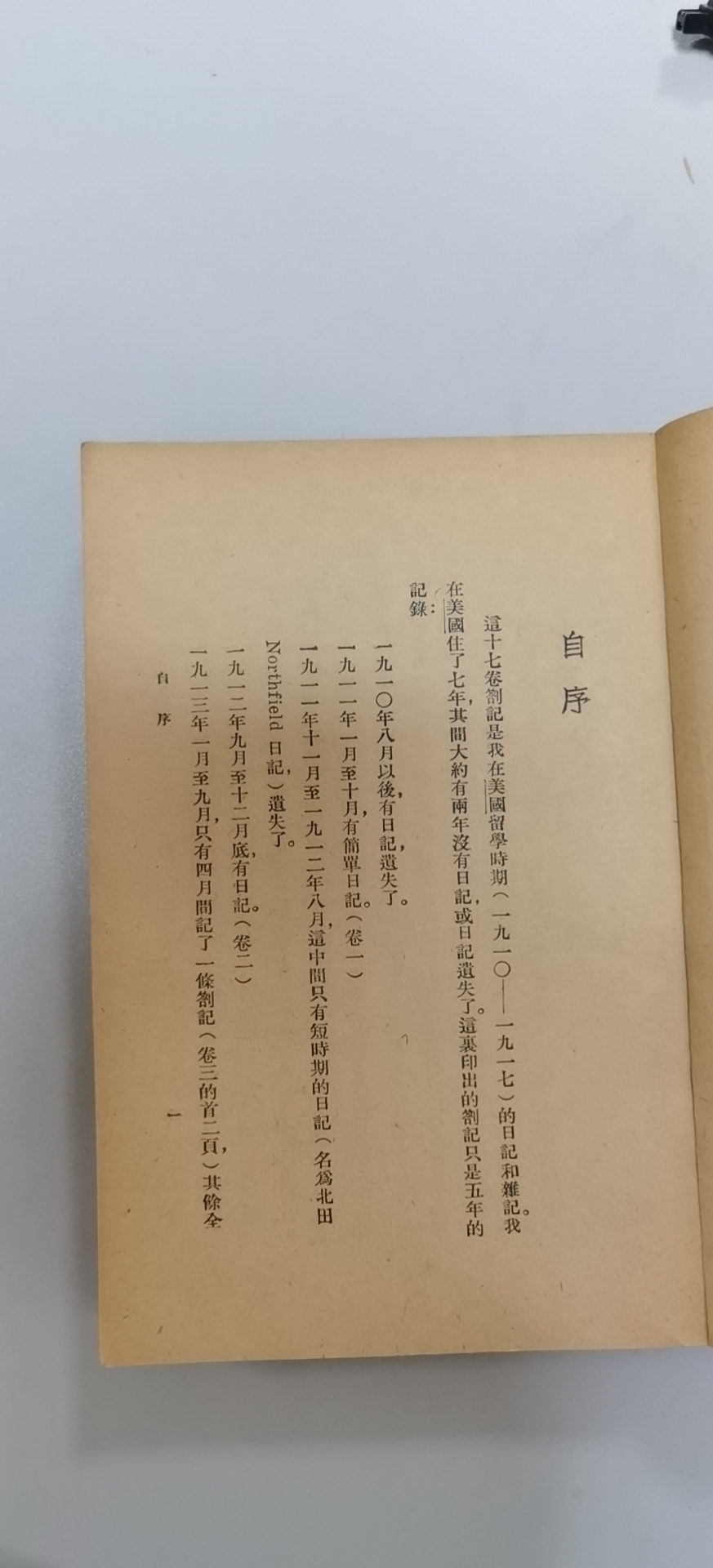 亞東版自序,詳細記述了1910-1917年日記出版前的存失情況以及出版過程。