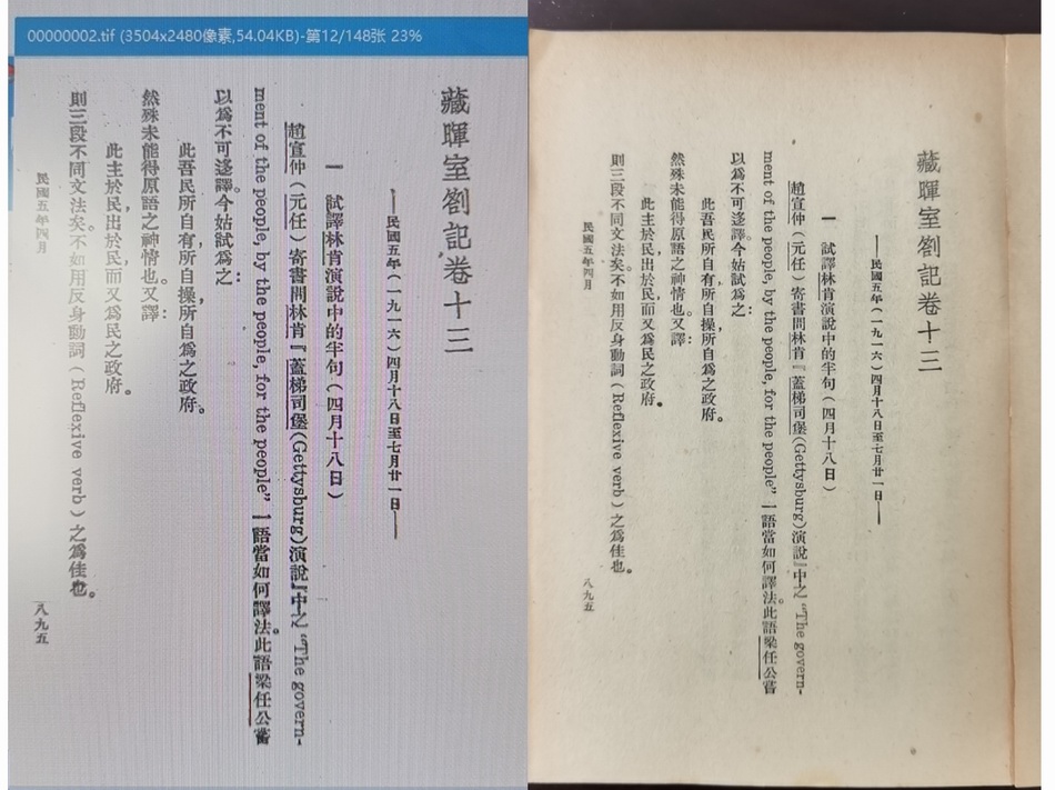隨後,張稷請國家圖書館的朋友找到了亞東版的版芯,經過比對,張稷可以確定,兩版版芯一模一樣,説明商務1947面版《胡適留學日記》並沒有重排,而是用了亞東圖書館的紙型直接印刷的。