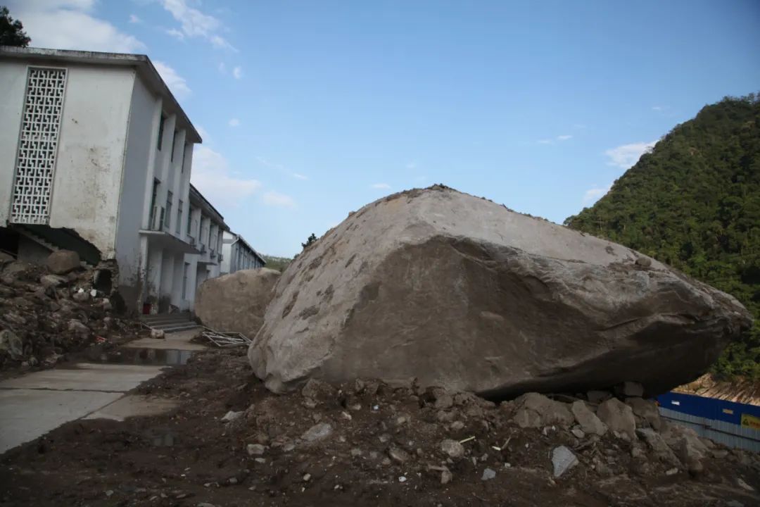 泥石流搬運下來的這個大石塊直徑大概有5米,把旁邊的房子切掉了1/3_風聞