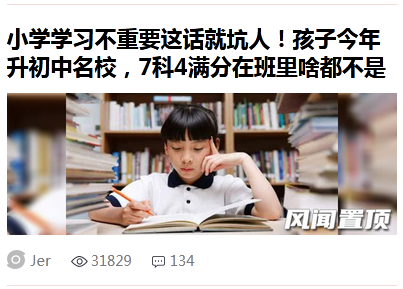 《小學學習不重要這話特別坑人!我孩子今年升的初中名校,7科4滿分在他們班屁都不是》 --- Jer