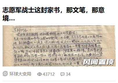 《志願軍戰士這封家書,那文筆,那意境……》---環球大變局