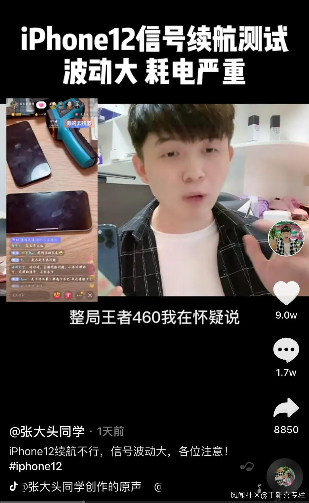 國內有數碼達人(張大頭同學)日前在抖音曝光的一個測試顯示,iPhone12信號續航測試波動大,耗電嚴重,並且測試顯示iPhone12 Pro對比11系列信號提升並不明顯。