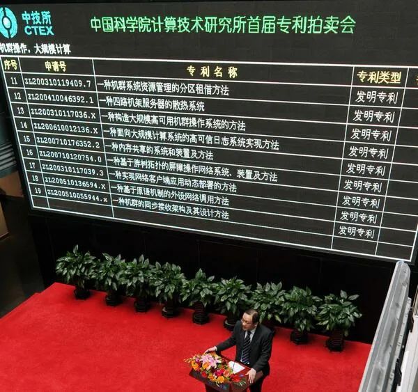 2010年,中國科學院計算技術研究所舉辦首屆專利拍賣會,公開拍賣智能信息、無線通信、集成電路、信息安全、物聯網、高性能計算等十餘個技術應用方向的324項專利