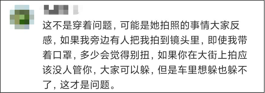 她覺得,車上有小孩子,公開場合穿這種衣服影響不好,於是斥責拍照女生“太暴露”。