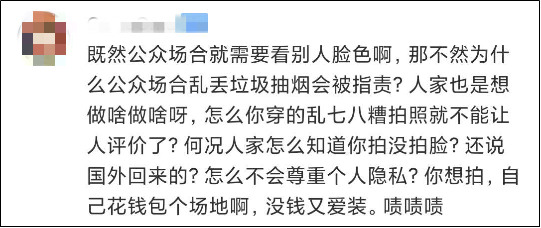 關於穿衣風格的問題,拍照女生認為,就算對方看不慣自己的穿衣風格,也不能當眾侮辱自己的人格。
