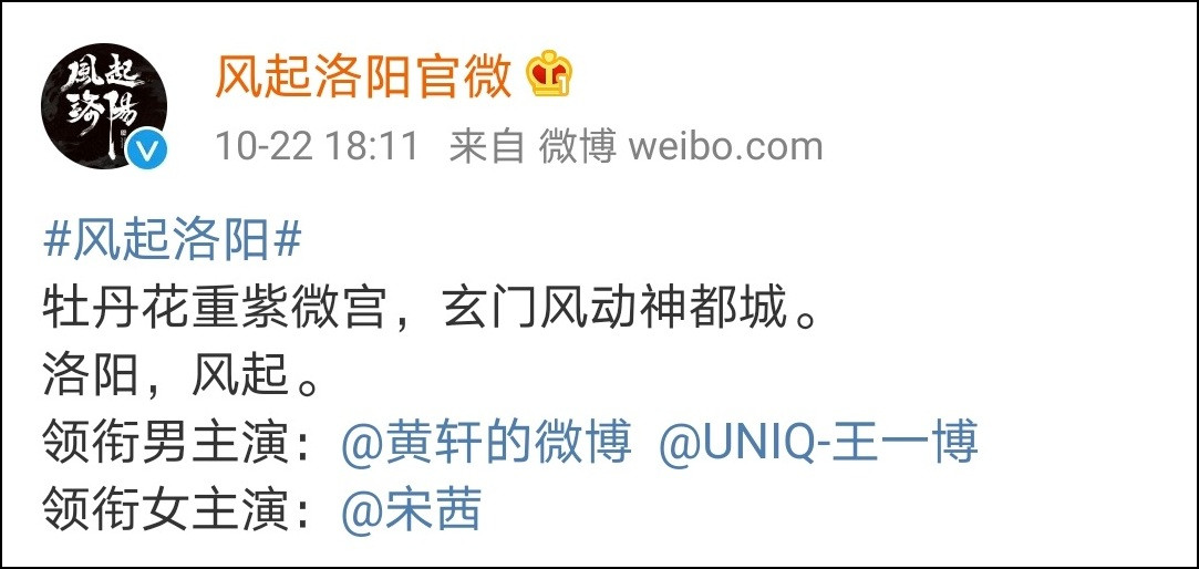 電視劇《風起洛陽》的“領銜男主演”和“領銜女主演”。