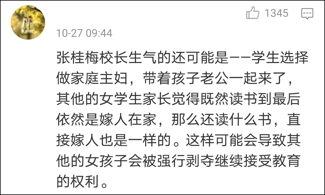 事情起因還是張桂梅在一檔節目中説出自己反對學生去做全職太太的話語。