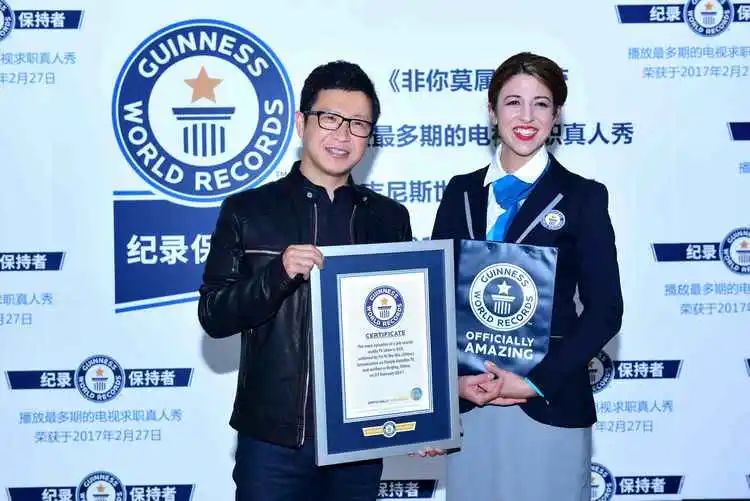 《非你莫屬》開播十年,曾在2017年榮獲 “播放最多期的電視求職真人秀” 吉尼斯世界紀錄稱號。
