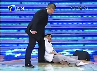 在舞台上遭到這樣的質疑,或許是郭傑過於緊張,搞得心理壓力太大, 竟然癱倒在舞台上。