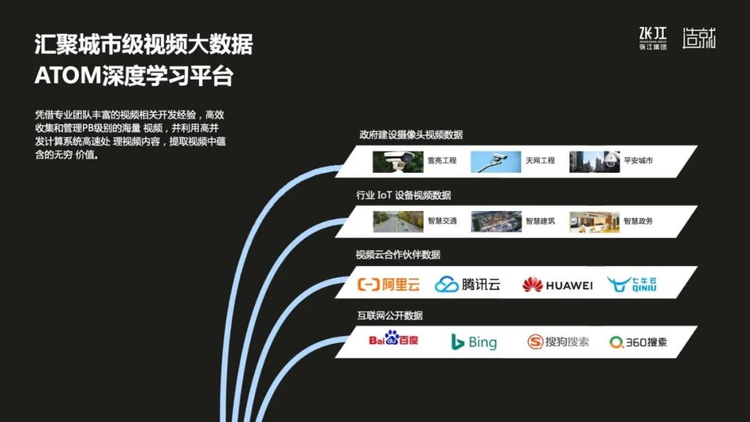 第三,視頻資源建設有多種模式,有來自政府的,如平安城市、天網工程、雪亮工程等等;有來自企業的,包括許多企業自己設備產生的視頻;有來自合作的基礎平台的,如阿里雲、騰訊雲、華為、七牛雲等等;還有來自互聯網的公開數據。