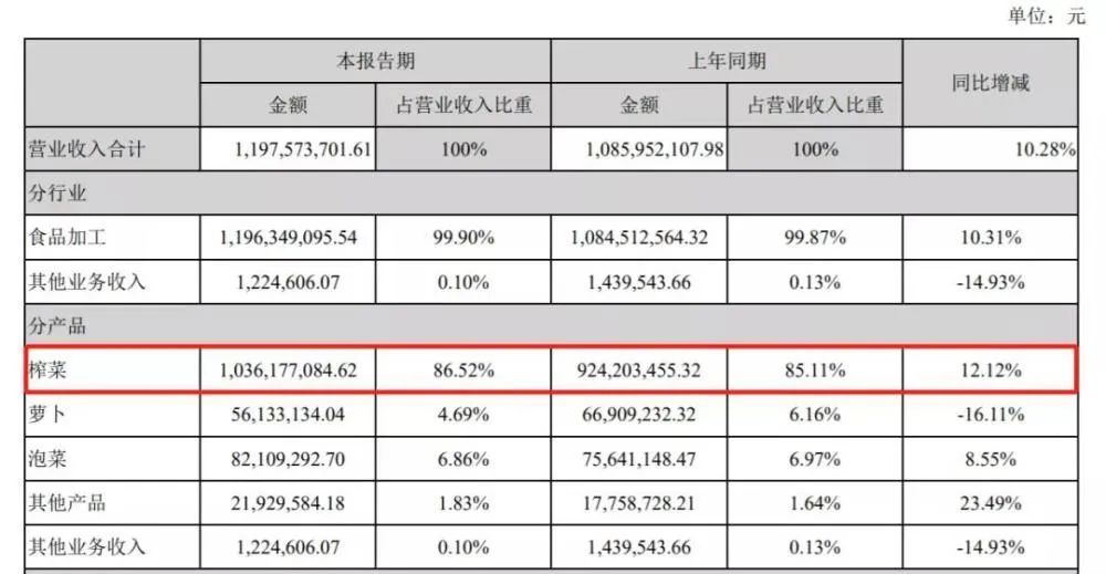 一是,其產品單一的問題仍未能獲得根本解決。目前,榨菜業務收入依然佔據涪陵榨菜總營收的80%以上。其他如蘿蔔、泡菜等產品在營收中的佔比幾乎可以忽略不計。