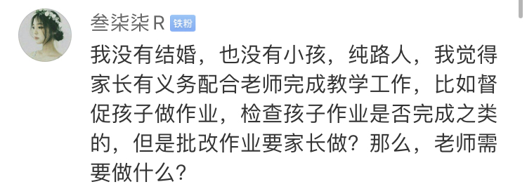 一位孩子母親表示,平時上班已經很忙很累了,回家還要給娃批改作業實在力不從心,有時候還會有“家長作業”,例如“讀過什麼”“你的感想”“家長摘抄”,實在頭疼。