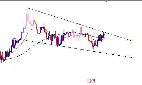 日線的格局目前是在走一個鍥形調整,位置在格局上沿附近!