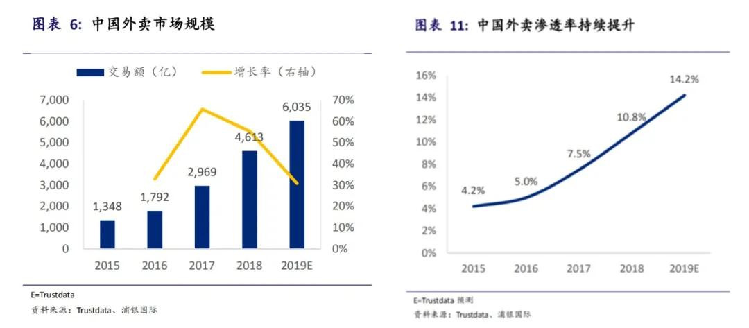 但餓了麼的補貼戰對搶佔市場份額並沒有起到太大作用,其後,市場份額佔比不斷下滑,與之相反的卻是中國外賣市場規模以及滲透率都在持續提升。