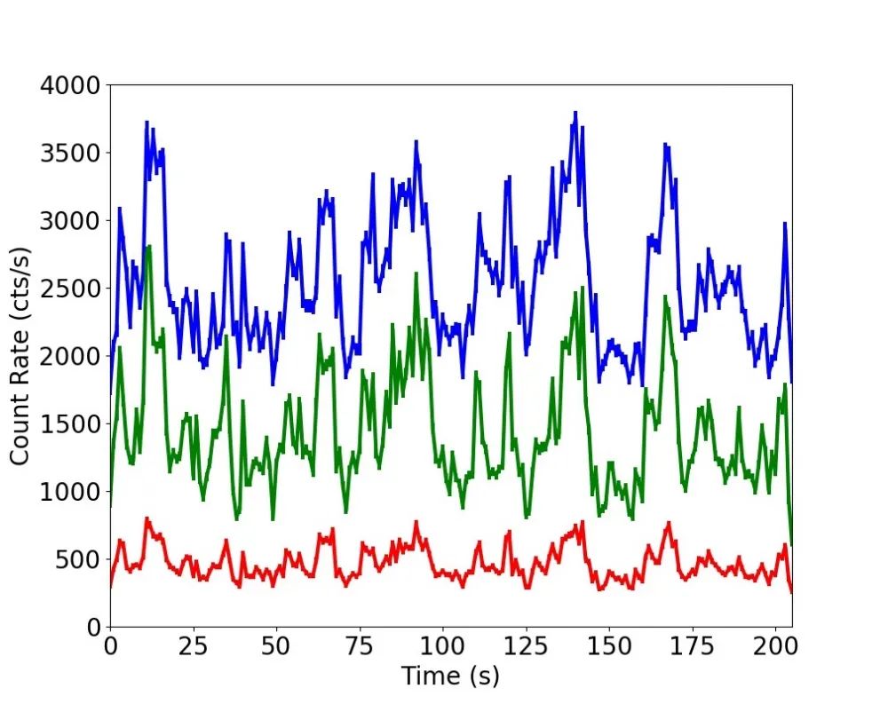 圖2. 低頻QPO表現為亮度類似週期性的高低變化(圖源:慧眼團隊)