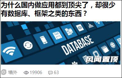 《我是程序員,國內做應用都到頂尖了,但卻很少有數據庫、框架之類的東西》——牆外