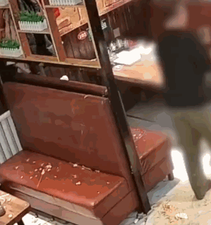 相關視頻可以看出,一名男子走到一桌顧客面前挑釁,並將一杯液體潑在對方身上。