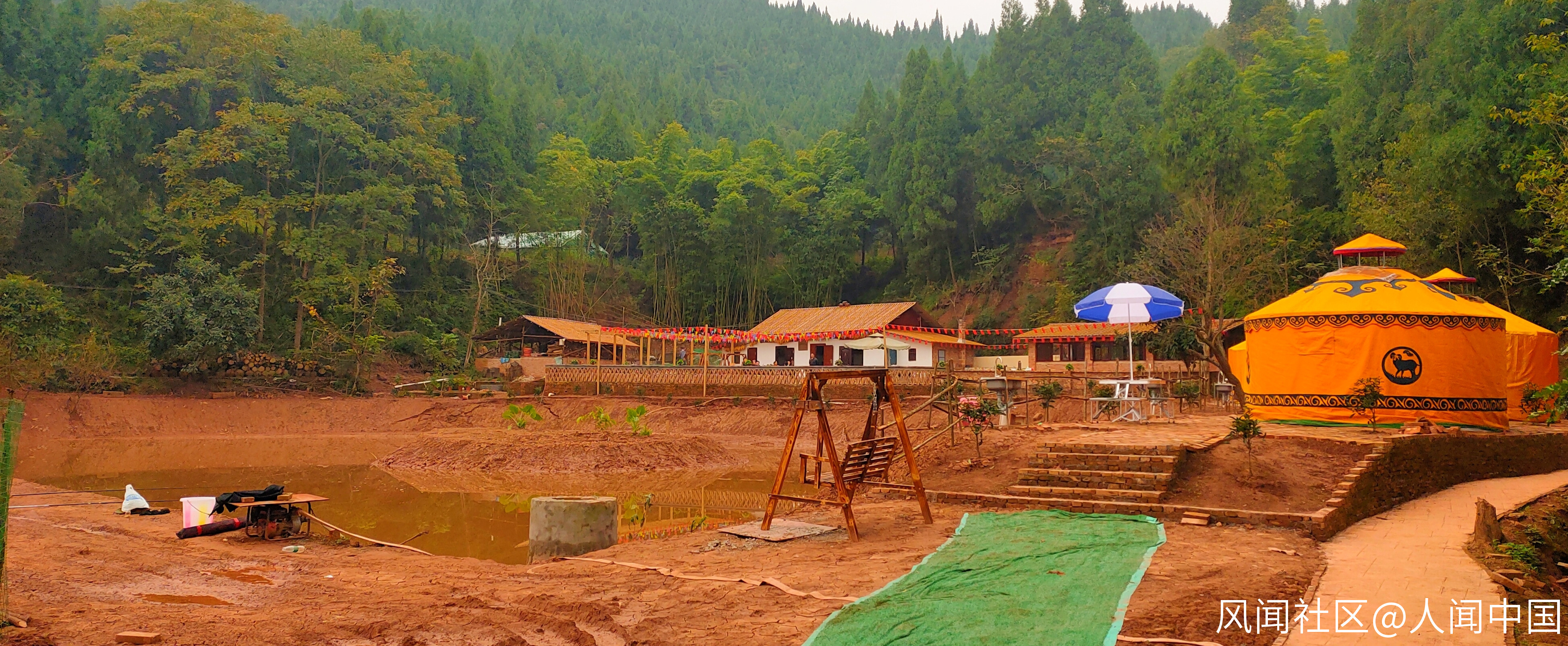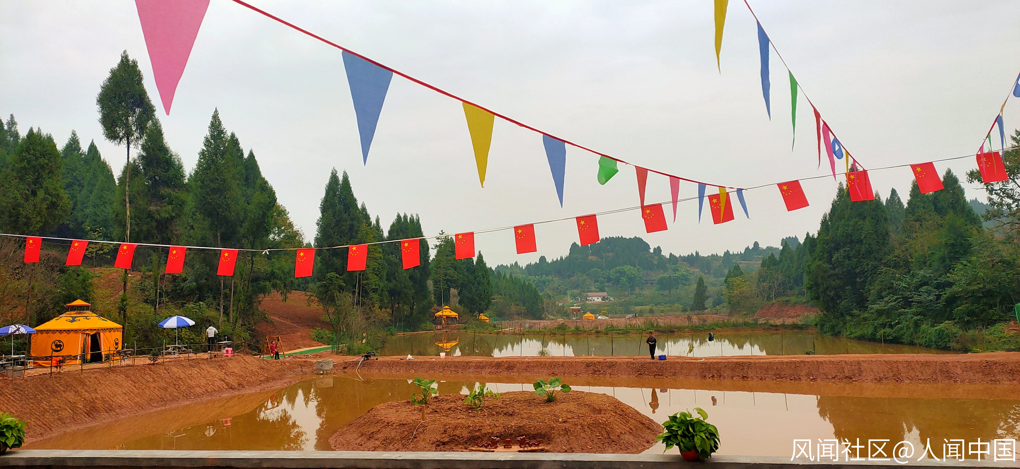 位於順慶區新復鄉紅巖村的該農場佔地,狀若一把張揚的古代太師椅,中間像椅背的山勢,雄偉莊重,葱柏覆蓋,蒼翠欲滴;兩側似扶手的山翼,宛如雙臂前伸,擁抱緩緩傾斜的椅座般田土。這椅座,田坎錯落,小路彎曲,經過稍事打造而就的四個水塘,呈梯級結構自村口摞到山腳。