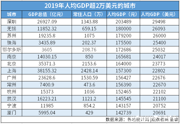根據觀網今天新聞裏列的數據,中國(不計港澳台)2019年就有14座城市跨過了人均GDP2萬美元這一門檻,覆蓋超1.4億人口。