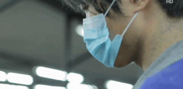 悶熱且通風不良的工作間,瀰漫着藍色的絮狀粉塵,它們粘在工人們的脖子上、臉上、頭髮裏,再被吸入體內。