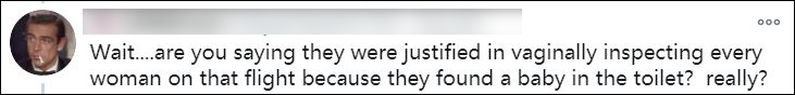 有網友表示,因為廁所裏的棄嬰,就對飛機上的乘客進行身體檢查,鬧呢?