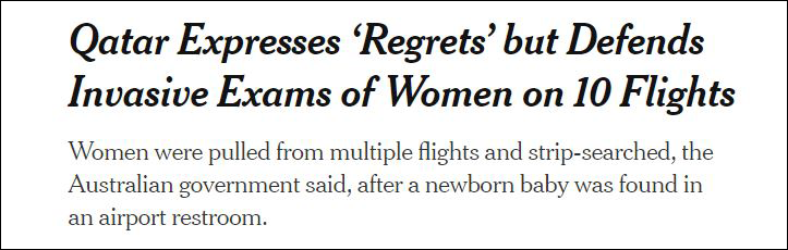 機場發現棄嬰,卡塔爾竟對10趟航班的女乘客“脱衣檢查”_風聞