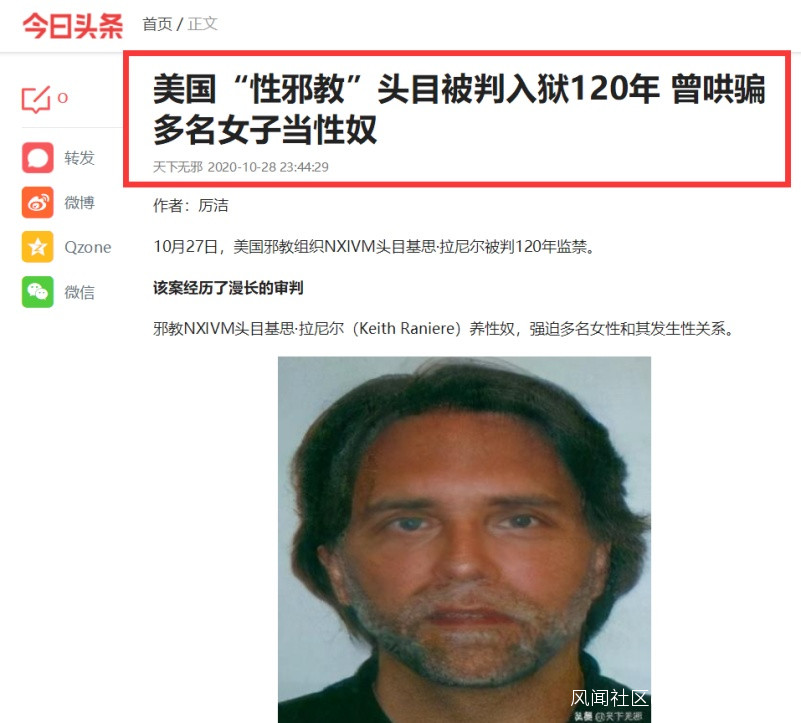 英國《每日郵報》28日稱,從1998年到2017年,NXIVM共招募了超過1.7萬名成員,該組織目前仍在運作,不少拉尼爾的支持者出席了27日的庭審。隨着NXIVM牽涉的醜聞不斷傳出,美國司法部2017年起正式對拉尼爾立案調查,後者聞訊逃到了墨西哥。自2018年3月起,拉尼爾及其同黨陸續落網並被定罪。 即便在拘禁期間,這名神通廣大的邪教頭子仍然通過遠程操控的方式運營着NXIVM,他指示下屬想辦法與美國“淫魔富豪”愛潑斯坦先前的辯護律師取得聯繫,他告訴信徒,要讓此案的主審法官意識到“自己已經被盯上”,他還要追隨者開一檔播客節目,鼓勵社會人士在起訴文件中“挑刺”,只要發現不合理之處即獎勵2.5萬美元。其麾下成員曾多次前往檢察官辦公室,肆意干擾檢方工作。(備註:原文轉自環球時報,轉載時有個別修改)