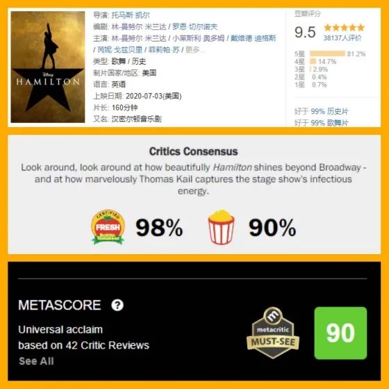在收視率上,它的表現更加驚人,上線第一個月有37.1%的訂閲用户觀看了《漢密爾頓》;相比之下,迪士尼重金打造的《花木蘭》的月觀看數只有不到《漢密爾頓》的一半。