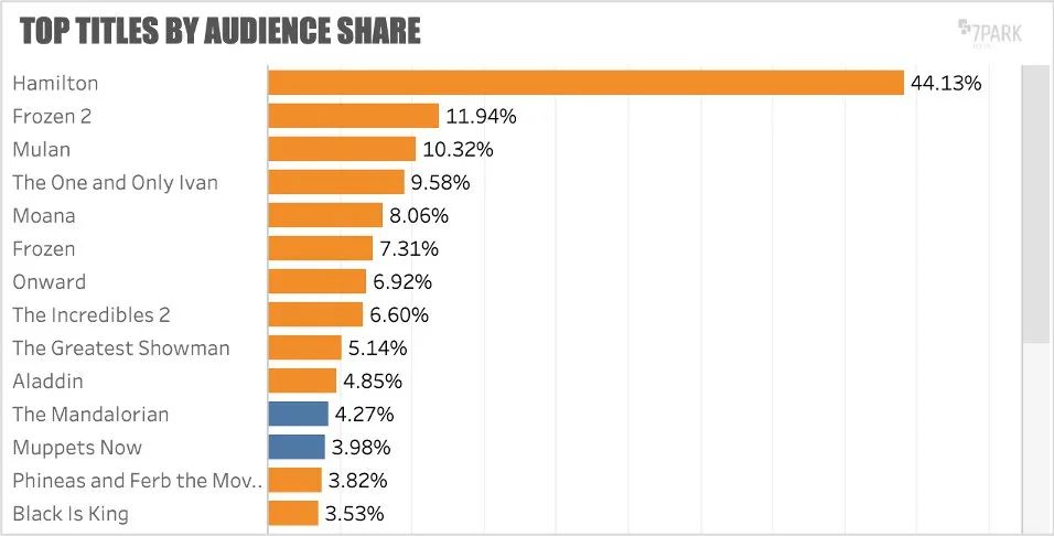 △ 《漢密爾頓》在Disney+第三季度的觀看份額中一枝獨秀